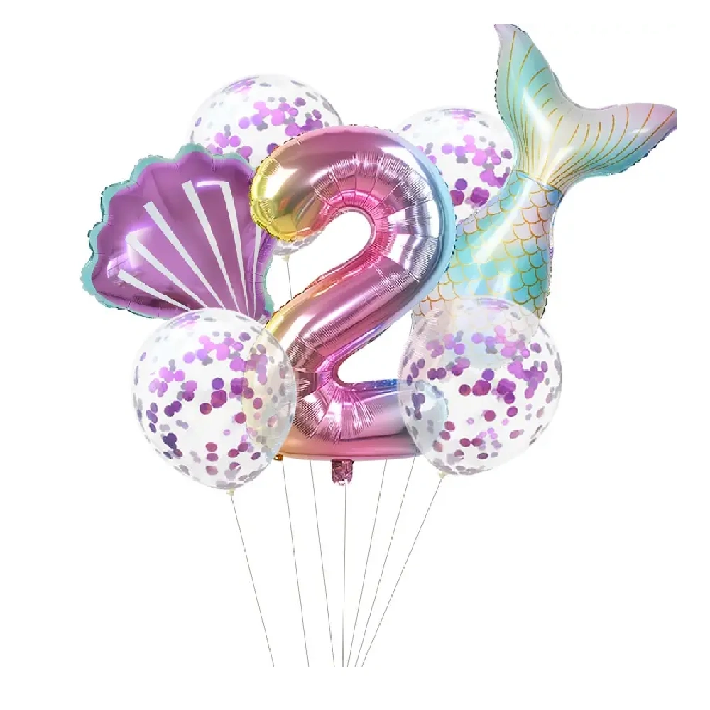 5 pcs Mermaid tail, number foil balloons