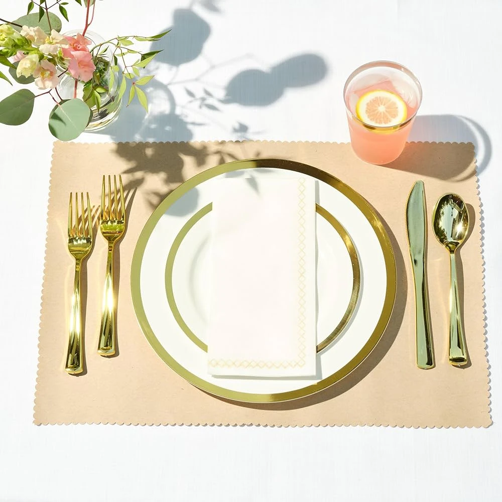 350 set Silver Plastic Plates Sets with Disposable Cutlery, Cups, Napkins Dinnerware sets for wedding Parties Colors:Silver, Rose madder